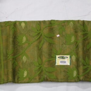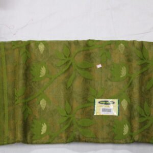 Woven with subtle floral motifs that blend beautifully into the base fabric. The patterns are not printed—they’re intricately woven into the saree using jacquard weaving techniques, adding a soft texture and depth.